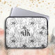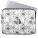 Moderne Schwarz-Weiß-Blumen-Mit Monogramm Laptopschutzhülle