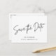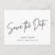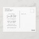 Eine maßgeschneiderte Hochzeit spart das Datum der Postkarte mit modernem Schwarz-Weiß-Schriftzeichen.