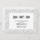 Eine moderne und minimale, aber keineswegs langweilige Save the Date Postkarte. Ein einfarbiges Farbthema, Schwarz und Weiß passt zu allem, mit einem Spot-Hintergrund. Zeigen Sie Ihren Stil und Flair mit diesem modernen, aber lustigen Design.