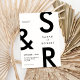 Moderne Schwarz-Weiß-Monogramm Hochzeitseinladung. Funktioniert mit fett formatierter Typografie und minimalem Grafikdesign. Personalisieren Sie Text mit allen Details Ihres besonderen Tages.