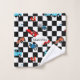 Dieses lustige, niedliche und moderne Design ist perfekt für Kinder und Jugendliche, die Liebe Rennen und Autos, das Design beinhaltet ein schwarz-weiß-quadratische Patter mit verschiedenen Fahrzeugmuster Typen, fügen Sie erste / Monogramm und Name oder kurze Text.