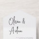 Eine schöne typografische Hochzeitseinladung mit Ihren Namen in modernen, schwarz handgeschriebenen Schriften, die oben geschrieben sind. Personalisieren Sie Ihre Hochzeitsdetails in klassischen Serifenschriften, die rechts unten ausgerichtet sind. Die beiliegende RSVP-Karte und der Faltstil machen diese Einladung zu einer ansprechenden Wahl.
