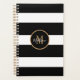 Moderne Schwarz-Weiß Streifen Gold Monogramm Planer