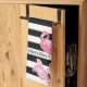 Das Produktdesign umfasst Flamingos mit kaleidoskopischen Paisleymustern in Rosa über schwarz-weißem Streifen. Dieses tropische Vogeldesign mit personalisiertem Text macht ein modernes und einzigartiges Küchentuch | Handtuch.