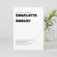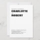 Eine stilvolle weiße Hochzeitseinladung mit modernem schwarzem Text.