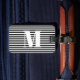 Moderne monogramm schwarz-weiße Streifen personalisierte benutzerdefinierte Anfangsbuchstaben stilvolle Gepäckmarke. Maßgeschneiderter weißer Buchstabe, schwarz-weiße Streifen Muster.