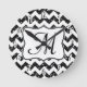 Moderne Schwarz-Zickzack-Monogramm-Erstklemme Runde Wanduhr