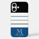 Moderne schwarze blaue Streifen mit Monogramm-Name iPhone 16 Hülle