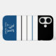 Dieses moderne Handy-Gehäuse ist mit einem farbenfrohen Streifen in schwarz, ozeanblau, grau und weiß gehalten. Personalisieren Sie es mit Ihrem Namen und Monogramm in weißem Schriftart am unteren Rand. Klicken Sie auf Weitere Einstellungen, um die Farben zu ändern.