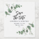 Moderne, schwarze Eukalyptus Save the Date chic Weinetikett