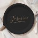 Moderne schwarze Gold Feminine Script Name Paper Plate. Diese moderne, elegante Papiertafel lässt sich einfach mit Ihrem individuelle Name personalisieren.