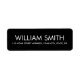 Elegante Rücksendeadressen-Aufkleber mit Vorlagenfeldern für Ihren Namen und Ihre Adresse. Weißer Text auf schwarzem Hintergrund.