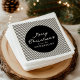 Erleben Sie Ihren Urlaub mit diesen modernen Black Stripes Christmas Napkins. Das Design zeigt "Frohe Weihnachten" in einem handgeschriebenen Creme-Skript mit Ihrem Familiennamen unten in der Koordination von Serif-Text angezeigt, umgeben von einem schwarzen Rahmen auf einem schicken schwarzen und cremegestreiften Hintergrund. Ideal für Weihnachtsfeiern, Abendessen oder saisonale Party, ergänzen diese Servietten andere Produkte in unserer Weihnachtskollektion "Modern Stripes Christmas Collection" und sorgen für ein abgestimmtes Urlaubsatmotiv.