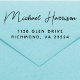Moderne Rücksendeadresse Gummi Briefmarke, die Ihren Namen in einem stilvollen Drehbuch und Ihre Adresse in einfacher Typografie enthält.