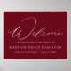 Elegantes Abschluss-Zeichen mit "Welcome" in einem weißen, modernen Kalligrafieschrift mit bordeauxfarbenem Hintergrund (oder einer beliebigen Farbe). Personalisieren Sie das moderne Abschluss-Poster, indem Sie den Namen, den Namen der Schule und das Abschluss Jahr. Das bordeauxfarbene Abschluss-Schild eignet sich sowohl für Absolventen der Highschool als auch für Absolventen der Uni.