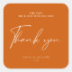 Moderne Script Burnt Orange Gastgeschenk Hochzeit Quadratischer Aufkleber