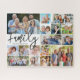 Erstellen Sie ein Foto-Memory-Puzzle mit dem Titel FAMILY in einer modernen Skripttypografie und personalisiert mit Ihrem Familiennamen in Ihrer Auswahl von Text und Hintergrundfarben (in grau auf weiß). Diese leicht hochzuladende Foto Collage Vorlage hat 16 Bilder in verschiedenen Formen und Größen. HILFE: Für Hilfe bei Designänderungen oder Personalisierungen, Farbänderungen oder der Übertragung des Designs auf ein anderes Produkt wenden Sie sich bitte an den Designer, BEVOR er die Bestellung über die Registerkarte Zazzle Chat MESSAGE unten abschließt, oder per E-Mail an makeitaboutyoustore@gmail.com.