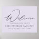 Elegantes Abschluss-Zeichen mit "Welcome" in einem modernen, schwarzen Kalligrafieschrift mit einem Lavendel-lila Hintergrund (oder Farbe Ihrer Wahl). Personalisieren Sie das moderne Abschluss-Poster, indem Sie den Namen, den Namen der Schule und das Abschluss Jahr. Das Lavendel-Abschluss-Schild eignet sich sowohl für Absolventen der Highschool als auch für Absolventen der Uni.