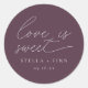 einfaches modernes Skript "Liebe ist süß" Hochzeitsegpflanze lila Farbe Gunst Aufkleber.