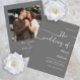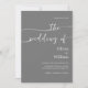 Mit dieser stilvollen, modernen Hochzeitseinladung mit eleganter Handschrift und einem minimalistischen Layout laden Sie Liebhaber zu einem ganz besonderen Tag ein. Der reiche graue Hintergrund gepaart mit fließender weißer Kalligraphie schafft ein zeitloses, romantisches Gefühl, das perfekt für jede zeitgenössische Zeremonie ist. Fügen Sie Namen, Datum und Veranstaltungsdetails hinzu, um dieses Design für Ihre Feier anzupassen. Ideal für schicke Hochzeiten, Stadtsäle oder Gartenzeremonien.