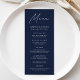 Moderne Script Navy Hochzeit Menükarte