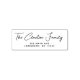 Einfache und stilvolle Briefmarke mit modernem minimalistischem Typografie-Design mit eigenem Familiennamen in handgeschriebener Schriftzeichen. Persönlich mit Ihrem Namen und Ihrer Adresse und dies wird eine hübsche, einfache Möglichkeit, Ihre persönliche Schreibmaschine in klassisch, zeitlos schwarz und weiß zu adressieren!