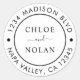 Erstellen Sie Ihren eigenen Rundaufkleber für die Rücksendeadresse. Klicken Sie für eine erweiterte Anpassung dieses Designs auf Weitere Links anpassen, um Schriftart, Größe und Farbe zu ändern.