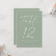 Einfache, moderne Hochzeitskarten mit "Tischnummer", die in einem handgeschriebenen, weißen Script mit einem sage-grünen Hintergrund (oder einer Farbe Ihrer Wahl) angezeigt werden. Um die sage grünen Hochzeitskarten zu bestellen: Fügen Sie Ihren Namen, das Hochzeitsdatum und die Tischnummer hinzu. Jede Nummer muss individuell in Ihren Warenkorb aufgenommen werden. Nachdem Sie alle Tischnummern in Ihren Warenkorb gelegt haben, checken Sie einfach aus und warten Sie, bis Ihre wunderschönen Tischnummern ankommen!