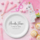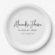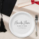 Moderne Trendy Script Graduation Party Napkin Schwarz und Weiß Elegant Minimalistisch Design Feiern Sie Ihren Absolventen mit diesem modernen trendigen Drehbuch-Teller mit einem stilvollen, weißen Hintergrund und eleganten, stilvollen schwarzen Drehbuch. Das minimalistische Design eignet sich perfekt für eine stilvolle und zeitgenössische Abschluss-Feier. Personalisieren Sie ganz einfach mit unseren Vorlagen, fügen Sie den Namen Ihres Absolventen, die High School oder Uni, und das Unterrichtsjahr in Sekunden. Ideal für Abschlussfeiern, offene Häuser und unvergessliche Events. Dieses exklusive Design, das von der Künstlerin Catherine Sweetman entworfen wurde, bringt moderne Eleganz in Ihre Tischdekoration. Ideal für diejenigen, die eine saubere, elegante Ästhetik mit persönlicher Touch suchen.