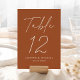 Einfache, moderne Hochzeitskarten mit "Tischnummer", die in einem handgeschriebenen, weißen Schrift mit Terrakotta-Hintergrund (oder einer Farbe Ihrer Wahl) angezeigt werden. Um die Terracotta Hochzeitskarten zu bestellen: Name, Hochzeitsdatum und Tischnummer hinzufügen. Jede Nummer muss individuell in Ihren Warenkorb aufgenommen werden. Nachdem Sie alle Tischnummern in Ihren Warenkorb gelegt haben, checken Sie einfach aus und warten Sie, bis Ihre wunderschönen Tischnummern ankommen!