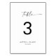 Diese moderne Script-Tischnummer ist perfekt für eine minimalistische Hochzeit. Das schlichte Schwarz-Weiß-Design zeichnet sich durch eine einzigartige industrielle Schrift mit modernem Boho-Stil aus. Anpassbar in jeder Farbe. Behalt das Design minimal und elegant, wie es ist, oder personalisiere es durch Hinzufügen von eigenen Grafiken und Kunstwerken. Die Karte druckt auf der Vorder- und Rückseite (beidseitig). Die Artikel werden genau so gedruckt, wie sie auf dem Bildschirm erscheinen, wenn Sie sie zum Warenkorb hinzufügen, sodass Sie jede Tischnummer, die Sie benötigen, individuell anpassen und hinzufügen können.