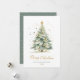 Moderne elegante Kalligrafie Script Weihnachtsbaum Non Foto Weihnachtskarten. Diese festliche, einfache Weihnachtskarten mit einem Aquarell-Weihnachtsbaum mit Goldbällen und Konfetti und einem "Frohen Weihnachtsgrüßen"-Grußtext, der in einem handgeschriebenen Schriftart in Gold und Weiß geschrieben ist. Auf der Rückseite goldener Glitzer Schnee oder glitzernde goldene Konfetti auf staubigen grünen Hintergrund. Diese Weihnachtskarten des Fotos sind eine tolle Gelegenheit, die Liebsten daran zu erinnern, dass sie sich in dieser Winterferien-Jahreszeit an sie erinnern.