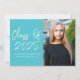 Moderne Graduiertenparty lädt mit "Class of 2023" in einem weißen handgeschriebenen Drehbuch auf türkisfarbenem Hintergrund ein. Personalisieren Sie die Vorderseite des Abschlusses einladen, indem Sie den Namen, den Schulnamen und das vertikale Foto des Absolventen. Die Einladung kehrt zurück, um Ihre Abschlussfeierdetails in weißer Schrift auf türkisfarbenem Hintergrund anzuzeigen.