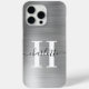 Erstellen Sie Ihren eigenen personalisierten Mädchennamen und Ihre mit Monogramm Telefonzelle. Silber und silbergraue Imitate aus der Digitaltechnik bürsten Metallfoliengrafiken. Schwarz-Weiß zeitgenössisches Monogramm mit elegantem Kalligraphiedesign.