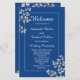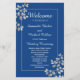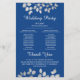 Stilvolles und elegantes Hochzeitsprogramm in silberfarbenem, blumengeschmücktem Rahmen mit einem schönen Design. Text kann für Ihren Hochzeitstag, Jahrestag oder jede Art von Feier personalisiert werden.