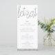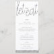 Passen Sie das Menü Ihrer Veranstaltung mit diesen schönen Menükarten an! Jede Karte zeichnet sich durch ein handgemaltes Pinselstrichdesign mit modernen, kursiven Schriftzeichen auf der Vorderseite und einen folienaussehenden Hintergrund mit einem Deko-Linienmuster auf der Rückseite aus! Sie können jedes Detail Ihres Menüs anpassen. Diese Karte ist sicher ein wow Faktor für die Platzierung Ihres Tisches.