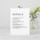 Moderne, élégant, élégant Hochzeit-Details-Karte. Editiere dein Produkt einfach in wenigen Minuten. Über "weiteres personalisieren" können Schriftart/Größe/Farbe und Position verändert werden.