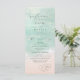 Schöne türkisfarbene abstrakte Aquarell glitzernde Ozeanwelle und Herzen im Hintergrund des Sandstrandes, mit stilvollem Drehbuch und eleganten Serif-Schriftart, modern und einfach. Große Hochzeiten für Hochzeiten an den Wasserstränden, tropische Hochzeit in Urlaubsort, Hochzeiten an der Küste im Sommer.