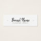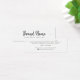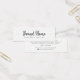 Eine Miniprodukt-Anzeigetafel in weißer oder benutzerdefinierter Farbe mit Social Media-Icons und Ihrem Markennamen in einem eleganten Kalligraphie-Script-Schriftart. Die Ohrring-Hilfslinien können durch Hinzufügen und Entfernen von Leerzeichen im Vorlagenfeld und durch Verschieben des gesamten Elements im Entwurfstool eingestellt werden. Elegantes, modernes und minimales Design