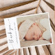 Freuen Sie sich auf die elegante und gedankenvolle Dankeschön-Karte, mit der Ihr Baby duscht. Es zeichnet sich durch einen eleganten, weißen Hintergrund mit "Danke" in einem schicken, fließenden, modernen Drehbuch aus, das Wärme und Eleganz verleiht. Der Name Ihres Babys erscheint darunter in einer zeitgenössischen Schrift. Ein individuelles Baby-Foto fügt eine unvergessliche, persönliche Touch hinzu. Die Rückseite bietet Platz für Ihre personalisierte Nachricht.