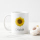 Moderne Blumenkaffee-Tasse mit rustikalem Gelbblütenbild. Mit schwarzen Schriftzeichen können Sie den Text personalisieren, um ein großartiges, benutzerdefiniertes Accessoire zu erstellen. Ein fröhlicher Gegenstand, um Ihr Lieblingsgetränk zu genießen.