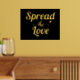 Moderne "Spread the Liebe" zitieren fett gedruckte Typografie und Herz-Gold-Folie auf schwarzem Druck.