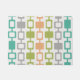 Ein schlichtes minimalistisches Muster, das durch die abstrakte Kunst der 1950er Jahre inspiriert wurde, mit Säulen aus abgerundeten Quadraten in Orange, Chartreuse grün, Türkis und Grau.