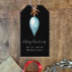 Personalisieren Sie diese Geschenkmarke mit Ihrem Namen für einen einzigartigen Weihnachtsfeiertag der Kunst. Ich habe dieses schlicht zarte blaugrüne aquamarine Weihnachtsbauble handgemalt. Die goldgelben botanischen Blätter setzen einen Vintagen Urlaubsstil auf schwarzem Hintergrund aus. Moderne elegante Weihnachtsschrift und Familienname sind in Weiß. Der gesamte Text ist bearbeitbar. Ich hoffe, Sie genießen diese liebevoll gemachte Karte.