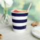 Moderne Stripes-Skripte nennen dunkelmarineblau und weiß chic Paper Cups.