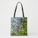 Die Blume blühen in einer Farbexplosion und vermischen Blau-, Grün-, lila- und Gelbtönen. Die Szene hat eine traumhafte Qualität, mit wirbelnden Mustern, die ein Gefühl von Bewegung und Energie.