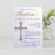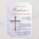 Verziertes Kreuz mit Wirbel von Reben und Lilien. Passen Sie diese hübsche Einladung mit Ihrem eigenen Text an. Das Kreuz kann bei Bedarf verschoben werden. Originalbild von pj_design.