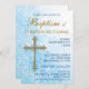 Verziertes Kreuz mit Wirbel von Reben und Lilien. Passen Sie diese hübsche Einladung mit Ihrem eigenen Text an. Das Kreuz kann bei Bedarf verschoben werden. Originalbild von pj_design.