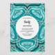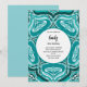 Verleihen Sie Ihrer Feier mit dieser kühnen Teal-Abstrakt-Patroulie-Geburtstagseinladung moderne künstlerische Energie. Auffallendes symmetrisches Mandala-Design, das fließende Teal-, Türkis- und Weißformen für einen lebendigen und zeitgenössischen Look kombiniert.
