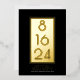 Diese moderne, aber elegante Save the Date-Karte besticht durch einen schicken schwarzen Hintergrund mit dem Hochzeitstermin in erhöhter Goldfolie. Sie können dieses Design noch weiter anpassen, indem Sie die Hintergrundfarbe ändern, dem Backer ein anderes Foto und/oder einen zusätzlichen Text hinzufügen. Die Folie ist in Gold, Silber oder Rose erhältlich und strahlt absolut! Wählen Sie eine erhöhte Folie aus, um die Datumskarten zu speichern, um diesen Wow-Faktor hinzuzufügen!